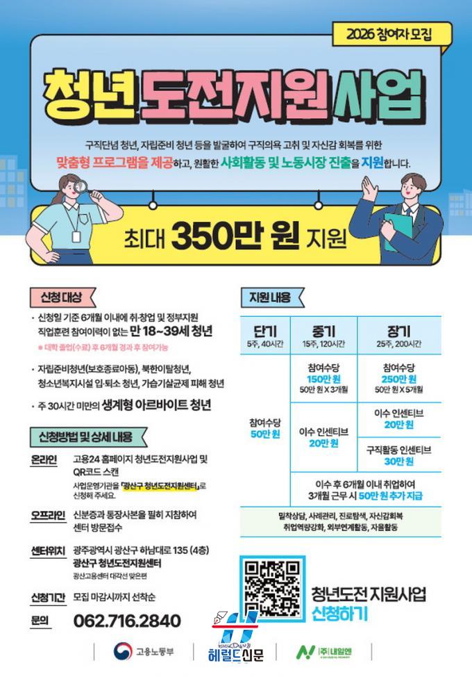 [Çì·²µå½Å¹® = ³ë½Â¾ð ±âÀÚ] ±¤Áֽà ±¤»ê±¸´Â °í¿ë³ëµ¿ºÎ°¡ ÁÖ°üÇÏ´Â ¡®Ã»³âµµÀüÁö¿ø»ç¾÷¡¯ Âü¿©ÀÚ¸¦ ¸ðÁýÇÑ´Ù°í ¹àÇû´Ù.
