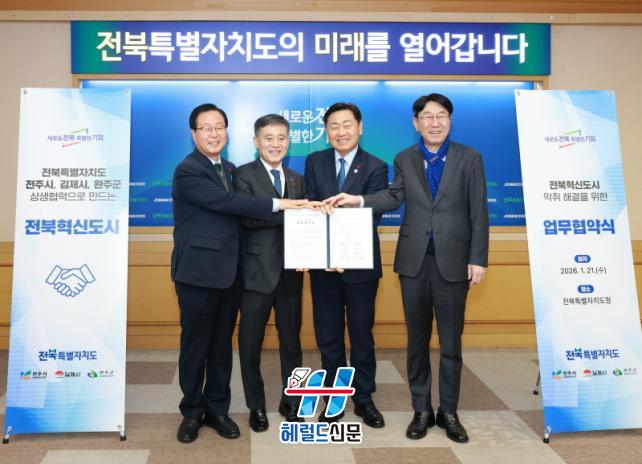 [Çì·²µå½Å¹® = ³ë½Â¾ð ±âÀÚ] ¿ÏÁÖ±ºÀÌ 21ÀÏ ÀüºÏƯº°ÀÚÄ¡µµÃ»¿¡¼ ÀüºÏƯº°ÀÚÄ¡µµ, ÀüÁÖ½Ã, ±èÁ¦½Ã¿Í ÇÔ²² Çõ½Åµµ½Ã ¾ÇÃë ¹®Á¦ ÇØ°áÀ» À§ÇÑ ¾÷¹«Çù¾àÀ» ü°áÇß´Ù.