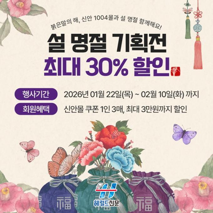 [Çì·²µå½Å¹® = ³ë½Â¾ð ±âÀÚ] ½Å¾È±ºÀº ´Ù°¡¿À´Â ¼³ ¸íÀýÀ» ¸Â¾Æ Áö¿ª ³ó¾î°¡¿Í ¼Ò»ó°øÀÎ ÆÇ·Î È®´ë¸¦ À§ÇØ ¿Â¶óÀÎ ¼îÇθô ¡®½Å¾È1004¸ôwww.shinan1004mall.kr)¡¯¿¡¼ 1¿ù 22ÀϺÎÅÍ 2¿ù 10ÀϱîÁö ¼³ ¸íÀý Ưº° ±âȹÀüÀ» ÁøÇàÇÑ´Ù.