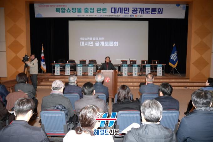 [Çì·²µå½Å¹® = ³ë½Â¾ð ±âÀÚ] ±¤ÁÖ±¤¿ª½Ã(½ÃÀå °±âÁ¤)´Â ´õºÒ¾î¹ÎÁÖ´ç ±¤Áֽôç°ú ÇÔ²² 23ÀÏ 5¡¤18±â³ä¹®È¼¾ÅÍ ´ëµ¿È¦¿¡¼ º¹ÇÕ¼îÇθô ÀÔÁ¡¿¡ µû¸¥ Áö¿ª »ó±Ç ¿µÇâ°ú »ó»ý ¹æ¾ÈÀ» ³íÀÇÇÏ´Â ¡®º¹ÇÕ¼îÇθô ´ë½Ã¹Î °ø°³Åä·Ðȸ¡¯¸¦ °³ÃÖÇß´Ù.