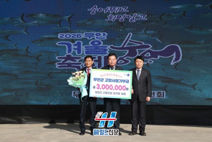 [Çì·²µå½Å¹® = ¼Û±Ù³² ±âÀÚ] ¹«¾È±º(±º¼ö ±è»ê)Àº Áö³ 24ÀÏ ¿¸° ¡®2026 ¹«¾È°Ü¿ï¼þ¾îÃàÁ¦¡¯¸¦ °è±â·Î ¿µ¾Ï±º »ê¸²Á¶ÇÕ ÀÓÁ÷¿øµéÀÌ Áö¿ª °£ »ó»ý ¹ßÀü°ú ±âºÎ¹®È È®»êÀ» À§ÇØ ¹«¾È±º °íÇâ»ç¶û±âºÎ±Ý 300¸¸ ¿øÀ» ±âŹÇß´Ù°í ¹àÇû´Ù.