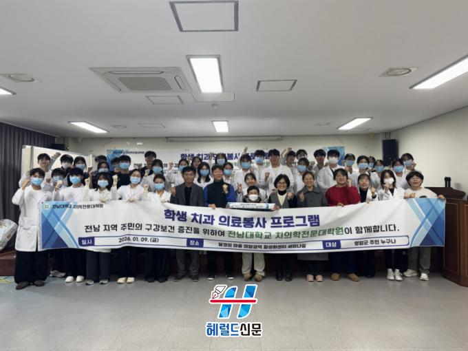 [Çì·²µå½Å¹® = ³ë½Â¾ð ±âÀÚ] Àü³²´ëÇб³ Ä¡ÀÇÇÐÀü¹®´ëÇпøÀº 2026³â 1¿ù 9ÀÏ(±Ý) Àü¶ó³²µµ ¿µ¾Ï±º ¹Ì¾Ï¸é ´ÞÄڹ̸¶À»¿¡¼ Áö¿ª ÁÖ¹ÎÀ» ´ë»óÀ¸·Î °Ü¿ï Ä¡°úÀÇ·áºÀ»çȰµ¿À» ½Ç½ÃÇß´Ù.