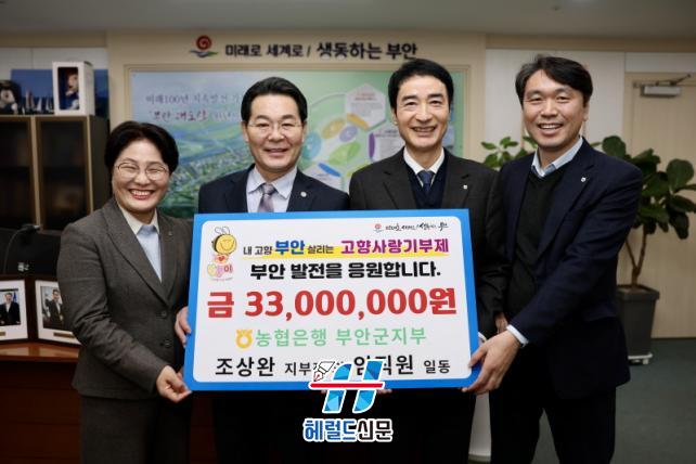 [Çì·²µå½Å¹® = ³ë½Â¾ð ±âÀÚ] ºÎ¾È±ºÀº NH³óÇùÀºÇà ºÎ¾È±ºÁöºÎ(ÁöºÎÀå Á¶»ó¿Ï)¿Í ÀÓÁ÷¿ø Àϵ¿ÀÌ °íÇâ»ç¶û±âºÎ±Ý 3300¸¸¿øÀ» ±âŹÇß´Ù°í ¹àÇû´Ù.