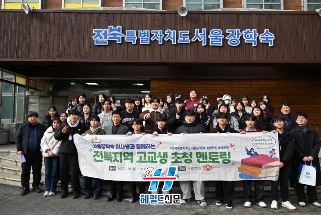 [Çì·²µå½Å¹® = ³ë½Â¾ð ±âÀÚ] ÀüºÏƯº°ÀÚÄ¡µµ¼¿ïÀåÇм÷(°üÀå °±æµ¿)Àº 2026. 1. 26.(¿ù) ~ 1. 28.(¼ö) 3Àϰ£ µµ³» 14°³ ½Ã․±º °í±³»ý 21¸í(1Çг⠳² 8¸í, ¿© 13¸í)À» ¼¿ïÀåÇм÷À¸·Î ÃÊû, ÀÔ»ç»ý°ú ÇÔ²² ¼÷¹ÚÇϸç <¼±ÈĹè¿ÍÀÇ ¸¸³²> ¸àÅ丵 Çà»ç¸¦ ÁøÇàÇÑ´Ù.