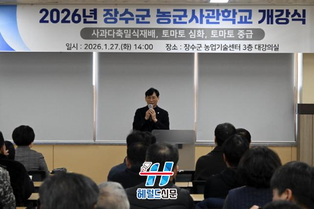 [Çì·²µå½Å¹® = ³ë½Â¾ð ±âÀÚ] Àå¼ö±ºÀº Áö³ 27ÀÏ ³ó¾÷±â¼ú¼¾ÅÍ ´ë°Àǽǿ¡¼ ±³À°»ý 130¿© ¸íÀÌ Âü¼®ÇÑ °¡¿îµ¥ ¡®2026³â Àå¼ö±º ³ó±º»ç°üÇб³ °³°½Ä¡¯À» ¼ºÈ²¸®¿¡ °³ÃÖÇß´Ù.