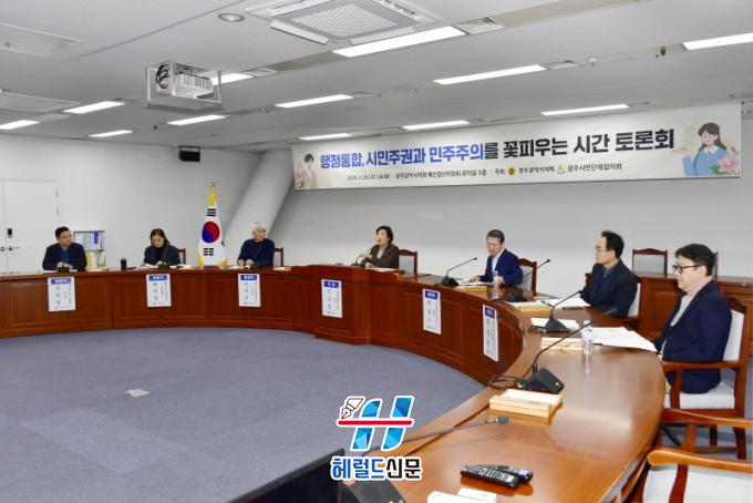 ƯÈ÷, ÀÇȸ ±â´ÉÀ» °ÈÇÏ°í ±³À°ÀÚÄ¡¸¦ ±¸ÇöÇÏ´Â µî µÎ ÇàÁ¤ÅëÇÕÀÌ ÇÕ¸ñÀû¼ºÀ» °®±â À§Çؼ´Â ½ÇÁúÀûÀÎ Á¦µµ¸¦ ¼³°èÇØ¾ß ÇÑ´Ù´Â ÀǰßÀÌ´Ù. 28ÀÏ ±¤ÁÖ±¤¿ª½ÃÀÇȸ´Â ±¤ÁֽùδÜüÇùÀÇȸ¿Í °øµ¿À¸·Î ½ÃÀÇȸ 5Ãþ ¿¹»ê°á»êƯº°À§¿øÈ¸ ȸÀǽǿ¡¼ ¡®ÇàÁ¤ÅëÇÕ, ½Ã¹ÎÁֱǰú ¹ÎÁÖÁÖÀǸ¦ ²ÉÇÇ¿ì´Â ½Ã°£ Åä·Ðȸ¡¯¸¦ °³ÃÖÇß´Ù.