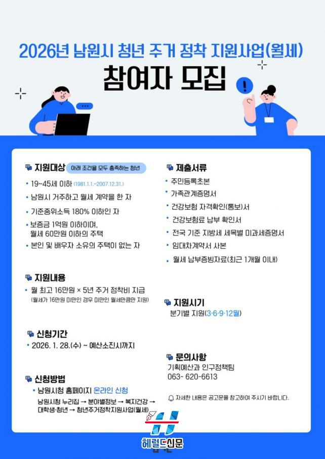 ¸ÕÀú À̸¦ À§ÇØ ³²¿ø½Ã´Â ¡¸2026³â û³â ÁÖ°ÅÁ¤Ã¥ Áö¿ø»ç¾÷¡¹À» ÅëÇØ ¿ù¼¼–Àü¼¼–³»Áý¸¶·ÃÀ¸·Î À̾îÁö´Â »ý¾Ö ´Ü°èº° ÁÖ°ÅÁö¿øÀ» ÃßÁøÇÑ´Ù.
