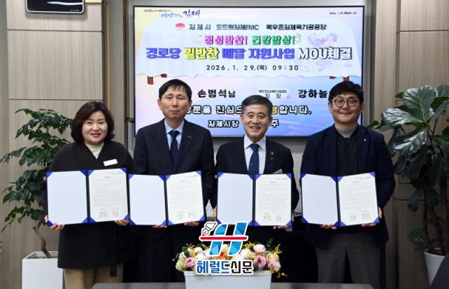 Á¤¼ºÁÖ ±èÁ¦½ÃÀåÀº ¡°À̹ø Çù¾àÀº Áö¿ª ±â¾÷°ú ÁöÀÚü°¡ ÇÔ²² ¾î¸£½Å º¹Áö Çâ»ó¿¡ ±â¿©ÇÏ´Â ÀÇ¹Ì ÀÖ´Â Çù·Â »ç·Ê¡±¶ó¸ç, ¡°¾ÕÀ¸·Îµµ ¹Î¡¤°ü Çù·ÂÀ» ÅëÇØ ÇöÀå¿¡¼ ü°¨ÇÒ ¼ö ÀÖ´Â ³ëÀκ¹Áö Á¤Ã¥À» Áö¼ÓÀûÀ¸·Î ÃßÁøÇØ ³ª°¡°Ú´Ù¡±°í ¹àÇû´Ù.