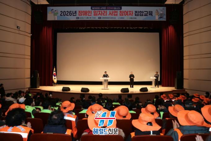 [Çì·²µå½Å¹® = ³ë½Â¾ð ±âÀÚ] °íÈﱺ(±º¼ö °ø¿µ¹Î)Àº 29ÀÏ °íÈï¹®Èȸ°ü ±è¿¬¼ö½Ç¿¡¼ Àå¾ÖÀÎÀÏÀÚ¸®»ç¾÷ Âü¿©ÀÚ 204¸íÀ» ´ë»óÀ¸·Î ¡®2026³â Àå¾ÖÀÎÀÏÀÚ¸®»ç¾÷ Âü¿©ÀÚ ¾ÈÀü±³À°¡¯À» ½Ç½ÃÇß´Ù°í ¹àÇû´Ù.