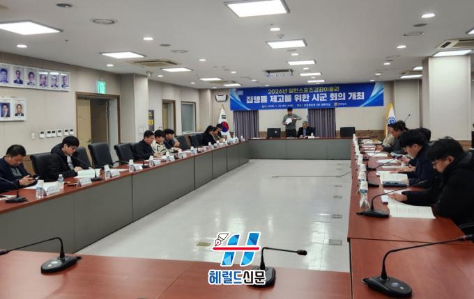 [Çì·²µå½Å¹® = ³ë½Â¾ð ±âÀÚ] Àü¶ó³²µµ´Â 29ÀÏ Àü³²µµÃ¼À°È¸ ´ëȸÀǽǿ¡¼ µµ, ½Ã±º, üÀ° °ü°èÀÚ µîÀÌ Âü¼®ÇÑ °¡¿îµ¥ 2026 ÀϹݽºÆ÷Ã÷°ÁÂÀÌ¿ë±Ç ½Ã±º ´ã´ç ȸÀǸ¦ °³ÃÖ, »ç¾÷ÀÇ È¿À²Àû ÃßÁø°ú ÁýÇà·ü Á¦°í¸¦ À§ÇÑ ´Ù¾çÇÑ ¹æ¾ÈÀ» ³íÀÇÇß´Ù.