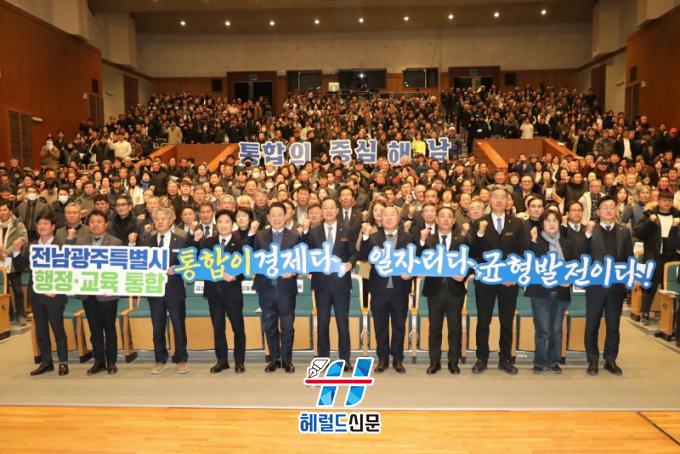 ÇÑÆí 29ÀÏ ÇØ³²¹®È¿¹¼úȸ°ü¿¡¼´Â Àü³²¡¤±¤ÁÖ ÇàÁ¤ÅëÇÕ µµ¹Î °øÃ»È¸°¡ ¿·È´Ù. 700¿©¸íÀÇ ±º¹ÎµéÀÌ °¡µæÂù °¡¿îµ¥ ¿¸° °øÃ»È¸¿¡¼´Â ±è¿µ·Ï Àü³²µµÁö»ç¿Í ±è´ëÁß Àü³²±³À°°¨ÀÌ ÇàÁ¤¡¤±³À° ÅëÇÕÀÇ ÃßÁø °æ°ú¿Í ÀǹÌ, ÇâÈÄ ¹ßÀü¹æÇâ¿¡ ´ëÇØ ÇØ³²±º¹Îµé¿¡°Ô ¼³¸íÇÏ´Â ÀÚ¸®¸¦ °¡Á³´Ù.