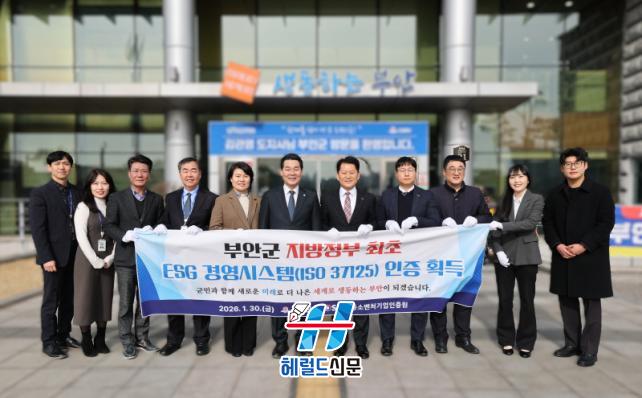 ºÎ¾È±ºÀº ÇàÁ¤ ½Ã½ºÅÛ Àü¹Ý¿¡ °ÉÃÄ ±Û·Î¹ú ¼öÁØÀÇ ESG °ü¸® ü°è¸¦ ¿Ï¼ºÇÑ ÃÖÃÊÀÇ Áö¹æÁ¤ºÎ¶ó´Â µ¶º¸ÀûÀΠŸÀÌÆ²À» °Å¸ÓÁã°Ô µÆ´Ù. À̹ø¿¡ ÃëµæÇÑ ESG °æ¿µÀÎÁõ½Ã½ºÅÛ(ISO 37125)Àº Áö¿ª »çȸÀÇ Áö¼Ó °¡´ÉÇÑ ¹ßÀü°ú ESG °æ¿µ ¼º°ú¸¦ Á¾ÇÕÀûÀ¸·Î Æò°¡ÇÏ´Â ±¹Á¦Ç¥ÁØÀÌ´Ù.