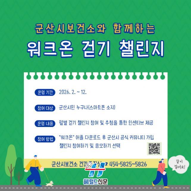 [Çì·²µå½Å¹® = ³ë½Â¾ð ±âÀÚ] ±º»ê½Ãº¸°Ç¼Ò(¼ÒÀå ¹®´ÙÇØ)°¡ ¸ð¹ÙÀÏ °È±â ¾Û ¡®¿öÅ©¿Â(WalkOn)¡¯À» Ȱ¿ëÇÑ ¿ùº° °È±â 縰Áö¸¦ 2¿ùºÎÅÍ 12¿ù±îÁö ¿î¿µÇÒ ¿¹Á¤À̶ó°í ¹àÇû´Ù.