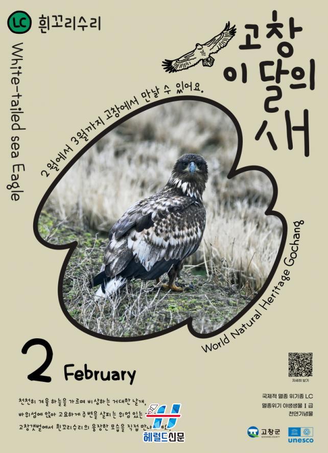 [Çì·²µå½Å¹® = ³ë½Â¾ð ±âÀÚ] °íⱺÀÌ 2¿ù ¡®°íâ°¹¹ú ÀÌ´ÞÀÇ »õ¡¯·Î Èò²¿¸®¼ö¸®(Çиí Haliaeetus albicilla)¸¦ ¼±Á¤Çϰí, °Ü¿ïö °íâ°¹¹úÀ» ã´Â ¸Í±Ý·ùÀÇ »ýÅÂÀû °¡Ä¡¿Í °¹¹ú »ýÅÂ°è º¸ÀüÀÇ Á߿伺À» ¾Ë¸®´Â Ä·ÆäÀÎÀ» Àü°³ÇÑ´Ù.