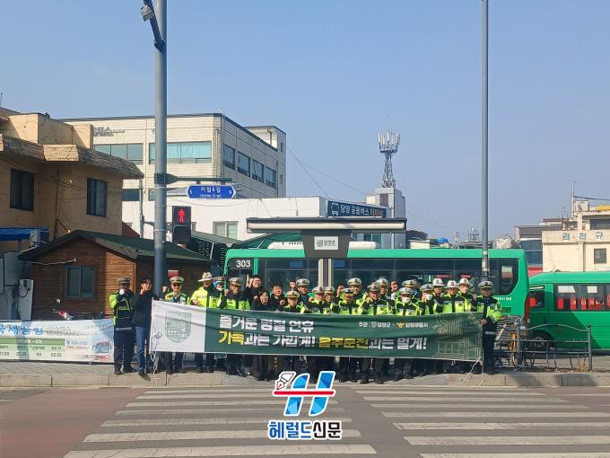 [Çì·²µå½Å¹® = Àü¿µ±Ô ±âÀÚ] ´ã¾ç±ºÀÌ ¼³ ¸íÀýÀ» ¸Â¾Æ ±Í¼º°´°ú ±º¹ÎÀÇ ±³Åë¾ÈÀü ÀÇ½Ä Á¦°í¸¦ À§ÇØ ´ã¾ç °ø¿ë ¹ö½ºÅ͹̳Π¾Õ¿¡¼ ¡®¼³ ¸íÀý ´ëºñ ±³Åë¾ÈÀü Ä·ÆäÀΡ¯À» ½Ç½ÃÇß´Ù.