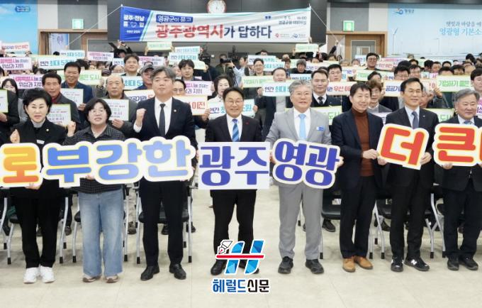 [Çì·²µå½Å¹® = ³ë½Â¾ð ±âÀÚ] ±¤ÁÖ±¤¿ª½Ã(½ÃÀå °±âÁ¤)´Â 5ÀÏ ¿ÀÈÄ ¿µ±¤±ºÃ» ´ëȸÀǽǿ¡¼ ¡®±¤ÁÖÀü³² ÅëÇÕ ¿µ±¤±º »ó»ýÅäÅ©¡¯¸¦ °³ÃÖÇϰí, ¿µ±¤ÀÇ ¿¡³ÊÁö¡¤±³Å롤»ê¾÷¡¤º¹Áö ºÐ¾ß ÅëÇÕ Àü·«À» °øÀ¯Çß´Ù.