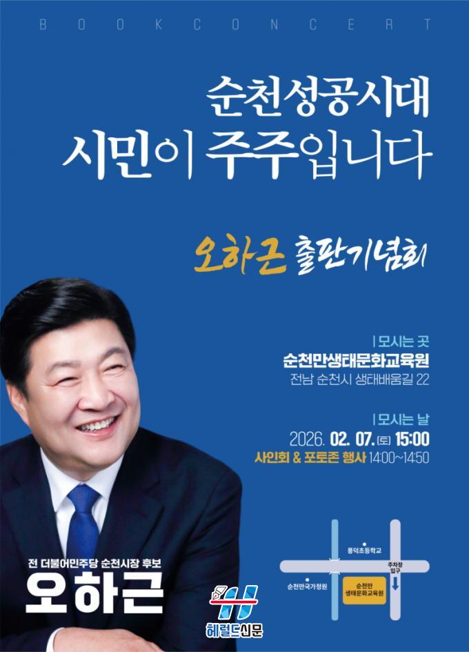 ¿ÀÇϱ٠Àü ´õºÒ¾î¹ÎÁÖ´ç ¼øÃµ½ÃÀå È帴 ¿À´Â 2¿ù 7ÀÏ(Åä) ¿ÀÈÄ 3½Ã, ¼øÃµ¸¸»ýŹ®È±³À°¿ø¿¡¼ ÀÚ½ÅÀÇ Àú¼ ¡®¼øÃµ¼º°ø½Ã´ë, ½Ã¹ÎÀÌ ÁÖÁÖÀÔ´Ï´Ù¡¯¸¦ Å׸¶·Î ÇÑ ºÏÄܼƮ¸¦ °³ÃÖÇÑ´Ù°í ¹àÇû´Ù.