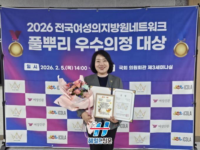 [Çì·²µå½Å¹® = ³ë½Â¾ð ±âÀÚ] ±¤ÁÖ±¤¿ª½ÃÀÇȸ Àӹ̶õ ÀÇ¿ø(´õºÒ¾î¹ÎÁÖ´ç, ³²±¸2)Àº 5ÀÏ ±¹È¸ÀÇ»ç´ç ÀÇ¿øÈ¸°ü¿¡¼ ¿¸° ¡®2026 Àü±¹¿©¼ºÁö¹æÀÇ¿ø³×Æ®¿öÅ© Ç®»Ñ¸® ¿ì¼öÀÇÁ¤ ½Ã»ó½Ä¡¯¿¡¼ »ýȰÁ¤Ä¡ ºÐ¾ß ¿ì¼ö»óÀ» ¼ö»óÇß´Ù.