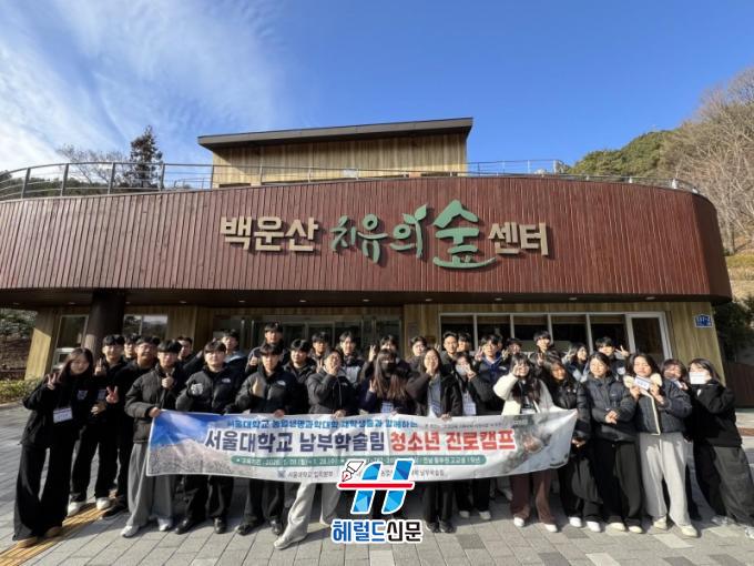 [Çì·²µå½Å¹® = ³ë½Â¾ð ±âÀÚ] ±¤¾ç½Ã´Â Áö³ 1¿ù 26ÀϺÎÅÍ 28ÀϱîÁö ¼¿ï´ëÇб³ ³²ºÎÇмú¸²°ú Çù·ÂÇØ Áö¿ª °íµîÇлýÀ» ´ë»óÀ¸·Î ÇÑ ¡®¼¿ï´ëÇб³ ³²ºÎÇмú¸² û¼Ò³â »ê¸² Áø·ÎÄ·ÇÁ¡¯¸¦ ¼¿ï´ëÇб³ ³²ºÎÇмú¸²°ú ¹é¿î»êÀÚ¿¬È޾縲 Ä¡À¯ÀÇ ½£ ÀÏ¿ø¿¡¼ ¼º°øÀûÀ¸·Î ¿î¿µÇß´Ù°í ¹àÇû´Ù.