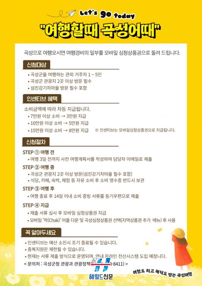 [Çì·²µå½Å¹® = ³ë½Â¾ð ±âÀÚ] °î¼º±ºÀÌ ¿©Çà Áß ¼ÒºñÇÑ ±Ý¾×¿¡ µû¶ó ÃÖ´ë 8¸¸ ¿øÀ» µ¹·ÁÁÖ´Â °ü±¤ Àμ¾Æ¼ºê Áö¿ø»ç¾÷¡®¿©ÇàÇÒ¶§ °î¼º¾î¶§¡¯¸¦ ¿î¿µÇÑ´Ù°í 6ÀÏ ¹àÇû´Ù.