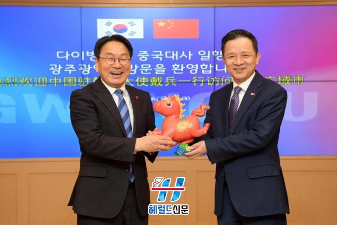 [Çì·²µå½Å¹® = ³ë½Â¾ð ±âÀÚ] °±âÁ¤ ±¤ÁÖ±¤¿ª½ÃÀåÀº 6ÀÏ ½Ãû ºñÁî´Ï½º·ë¿¡¼ ´ÙÀ̺ù(Óãܲ) ÁÖÇÑ Áß±¹´ë»ç¸¦ Á¢°ß, ÇÑ¡¤Áß Áö¹æÁ¤ºÎ °£ ±³·ù¡¤Çù·Â °È ¹æ¾ÈÀ» ³íÀÇÇß´Ù.