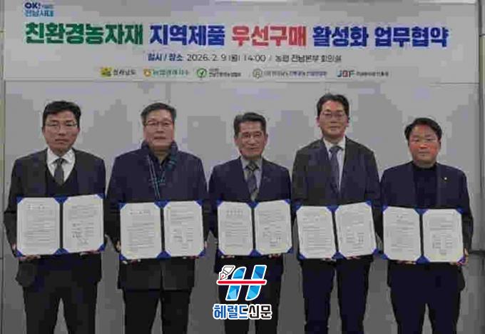 [Çì·²µå½Å¹® = ³ë½Â¾ð ±âÀÚ] Àü¶ó³²µµ´Â 9ÀÏ ³óÇùÁß¾Óȸ Àü³²º»ºÎ¿¡¼ Áö¿ª¿¡¼ »ý»êÇÑ Ä£È¯°æ³óÀÚÀç ¿ì¼± ±¸¸Å È®´ë¸¦ À§ÇÑ ¹Î¡¤°ü¡¤ÇÐ ¾÷¹«Çù¾àÀ» Çϰí, Áö¿ª ³» »ý»ê-¼Òºñ°¡ À̾îÁö´Â ¼±¼øÈ¯ ü°è ±¸Ãà¿¡ ³ª¼¹´Ù.