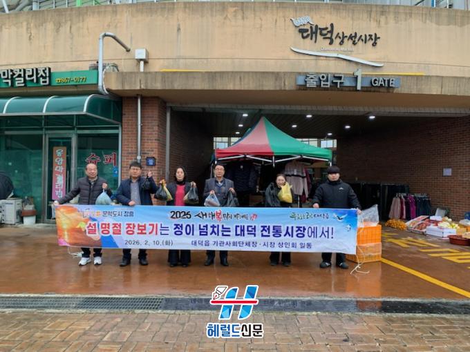 [Çì·²µå½Å¹® = Á¤¾ç¼® ±âÀÚ] ÀåÈﱺ ´ë´öÀ¾ ÇàÁ¤º¹Áö¼¾ÅÍ´Â 10ÀÏ ¼³ ¸íÀýÀ» ¾ÕµÎ°í Áö¿ª°æÁ¦ Ȱ¼ºÈ¿Í ¹Î»ý ÇöÀå ¼ÒÅë °È¸¦ À§ÇØ ´ë´ö ÀüÅë½ÃÀå ¿ÀÀÏÀå¿¡¼ ¡®¼³ ¸íÀý¸ÂÀÌ ÀüÅë½ÃÀå À庸±â Çà»ç¡¯¸¦ ½Ç½ÃÇß´Ù.