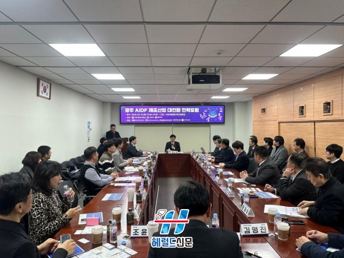 ±¤ÁÖ±¤¿ª½Ã(½ÃÀå °±âÁ¤)´Â 10ÀÏ ±¹È¸ÀÇ¿øÈ¸°ü Á¦1°£´ãȸ½Ç¿¡¼ ¡®±¤ÁÖ AIDF Á¦Á¶»ê¾÷ ´ëÀüȯ Àü·«Æ÷·³¡¯À» °³ÃÖÇß´Ù.