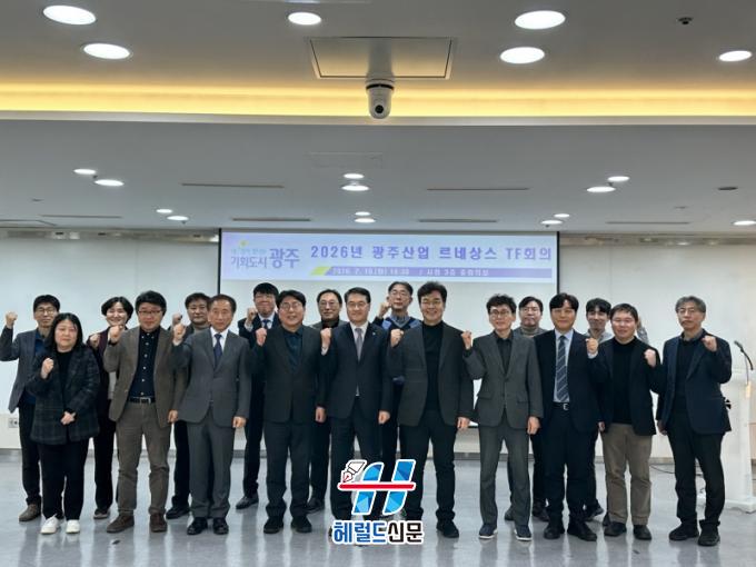 ±¤ÁÖ±¤¿ª½Ã(½ÃÀå °±âÁ¤)´Â 10ÀÏ ½Ãû ÁßȸÀǽǿ¡¼ ±è¿µ¹® ¹®È°æÁ¦ºÎ½ÃÀå ÁÖÀç·Î ¡®±¤ÁÖ»ê¾÷ ¸£³×»ó½º Àü´ãÆÀ(TF)¡¯ ù ȸÀǸ¦ ¿°í, ±¤Áֽà ÁÖ¿ä Àü·«»ê¾÷ÀÇ ½ÇÇà·ÂÀ» ³ôÀ̱â À§ÇÑ ÃßÁø ¹æÇâÀ» ³íÀÇÇß´Ù.