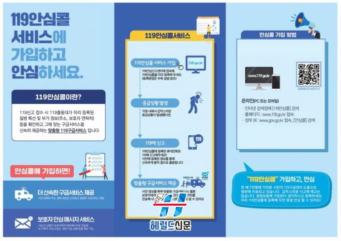 ¡®119¾È½ÉÄÝ¡¯ ¼ºñ½º´Â ´©¸®Áý(u119.nfa.go.kr)¿¡¼ °£ÆíÇÏ°Ô °¡ÀÔÇÒ ¼ö ÀÖÀ¸¸ç, °¡±î¿î ¼Ò¹æ¼¸¦ ¹æ¹®ÇØ µî·ÏÇÒ ¼öµµ ÀÖ´Ù. º»ÀλӸ¸ ¾Æ´Ï¶ó º¸È£ÀÚ°¡ ´ë¸® µî·ÏÇÒ ¼ö ÀÖ°í, ÇÑ ¹ø µî·ÏÇϸé Àü±¹ ¾îµð¼µç 119 ½Å°í ¶§ µî·Ï Á¤º¸°¡ ¿¬°èµÅ º¸´Ù Á¤È®ÇÏ°í ½Å¼ÓÇÑ ±¸±Þ ¼ºñ½º¸¦ ¹ÞÀ» ¼ö ÀÖ´Ù.