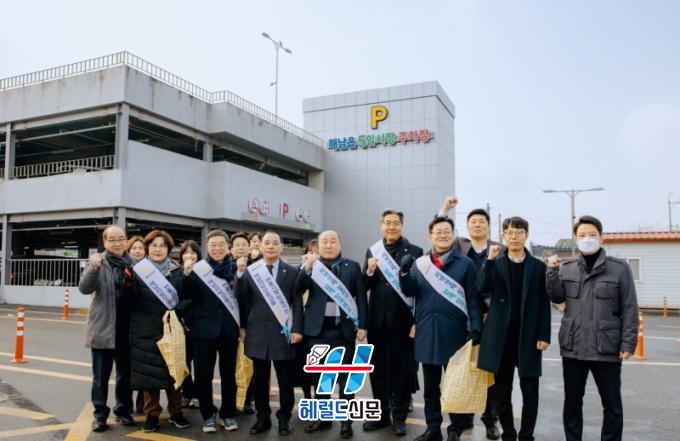 [Çì·²µå½Å¹® = Àü¿µ±Ô ±âÀÚ] ÇØ³²±ºÀÇȸ(ÀÇÀå À̼º¿Á)´Â 11ÀÏ ¿ÀÀü ¹ÎÁ· ´ë¸íÀý ¼³À» ¸Â¾Æ ÇØ³²À¾ 5ÀÏ ½ÃÀå¿¡¼ À庸±â Çà»ç¸¦ ÁøÇàÇϰí, °ü³» »çȸº¹Áö½Ã¼³À» ¹æ¹®ÇÏ¿© À§¹®Ç° Àü´Þ ¹× ½Ã¼³ °ü°èÀÚ¸¦ °Ý·ÁÇÏ¿´´Ù.