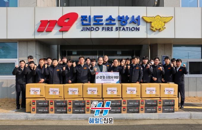 [Çì·²µå½Å¹® = ¼Û±Ù³² ±âÀÚ] Áøµµ±º ÅëÇÕ¹æÀ§ÇùÀÇȸ(ÀÇÀå ±èÈñ¼ö)°¡ ¹ÎÁ· °íÀ¯ÀÇ ¸íÀýÀÎ ¼³À» ¸Â¾Æ ±ººÎ´ë¿Í ¼Ò¹æ¼¸¦ ¹æ¹®ÇØ, À§¹®Ç°À¸·Î ÁøµµÀÇ Æ¯»ê¹°À» Àü´ÞÇϸç À§¹®Çß´Ù.