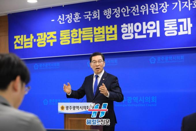 [Çì·²µå½Å¹® = ³ë½Â¾ð ±âÀÚ] ½ÅÁ¤ÈÆ ±¹È¸ ÇàÁ¤¾ÈÀüÀ§¿øÀåÀº ¡¸Àü³²±¤ÁÖÅëÇÕÆ¯º°½Ã ¼³Ä¡¸¦ À§ÇÑ Æ¯º°¹ý¾È¡¹ÀÌ ±¹È¸ ÇàÁ¤¾ÈÀüÀ§¿øÈ¸¸¦ Åë°úÇÑ °Í°ú °ü·ÃÇØ ¡°3°³ ±Ç¿ª µ¿½Ã ½ÉÀǶó´Â Àü·Ê ¾ø´Â Á¦¾à ¼Ó¿¡¼ µµÃâµÈ °á°ú¡±¶ó°í ¹àÇû´Ù.