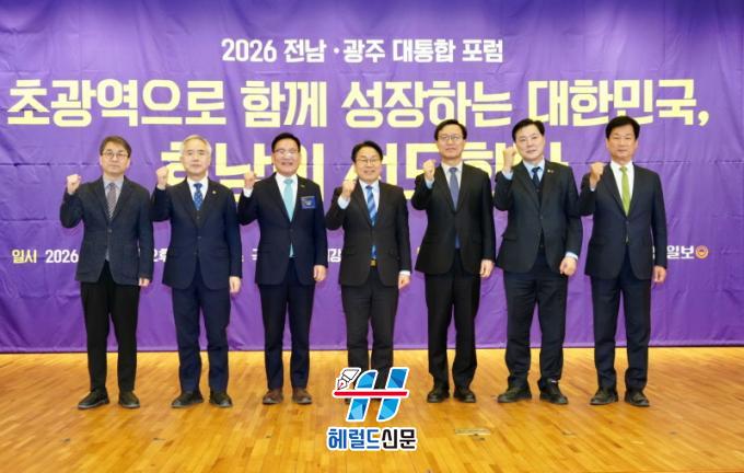 [Çì·²µå½Å¹® = ³ë½Â¾ð ±âÀÚ] ±¤ÁÖ±¤¿ª½Ã(½ÃÀå °±âÁ¤)´Â Àü¶ó³²µµ¿Í ÇÔ²² 19ÀÏ ¿ÀÈÄ ¼¿ï ±¹È¸µµ¼°ü ´ë°´ç¿¡¼ ¡®Ãʱ¤¿ªÀ¸·Î ÇÔ²² ¼ºÀåÇÏ´Â ´ëÇѹα¹, È£³²ÀÌ ¼±µµÇÑ´Ù¡¯¸¦ ÁÖÁ¦·Î ¡®2026 Àü³²¡¤±¤ÁÖ ´ëÅëÇÕ Æ÷·³¡¯À» °³ÃÖÇß´Ù.