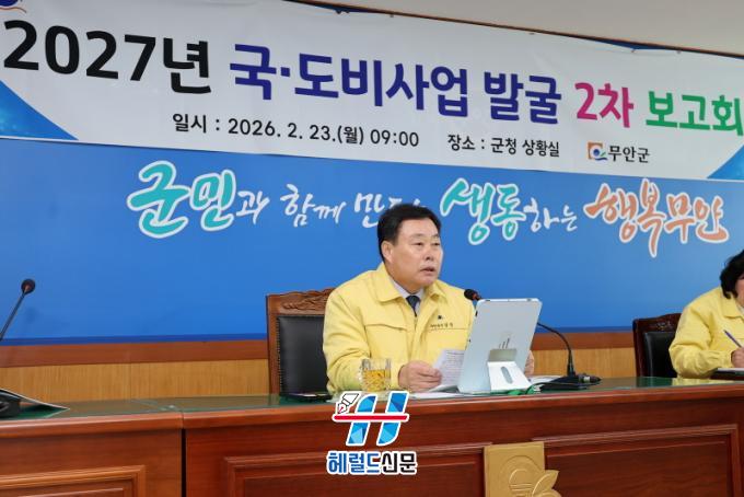 [Çì·²µå½Å¹® = Àü¿µ±Ô ±âÀÚ] ¹«¾È±º(±º¼ö ±è»ê)Àº 23ÀÏ °£ºÎ°ø¹«¿øµéÀÌ Âü¼®ÇÑ °¡¿îµ¥ 2027³âµµ ±¹¡¤µµºñ Áö¿ø °ÇÀÇ»ç¾÷ ¹ß±¼ º¸°íȸ¸¦ °³ÃÖÇß´Ù°í ¹àÇû´Ù.