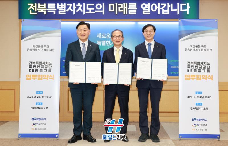 µµ´Â 23ÀÏ µµÃ»¿¡¼ ±è°ü¿µ ÀüºÏÀÚÄ¡µµÁö»ç, ±è¼ºÁÖ ±¹¹Î¿¬±Ý°ø´Ü ÀÌ»çÀå, ¾çÁ¾Èñ KB±ÝÀ¶±×·ì ȸÀåÀÌ Âü¼®ÇÑ °¡¿îµ¥ ¡®ÀÚ»ê¿î¿ë Æ¯È ±ÝÀ¶»ýŰè Á¶¼º ¹× Áö¿ª°æÁ¦ Ȱ¼ºÈ¡¯¸¦ À§ÇÑ 3ÀÚ ¾÷¹«Çù¾àÀ» ü°áÇß´Ù.