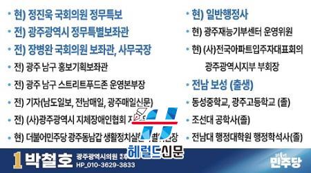 ¹Ú ¿¹ºñÈ帴 ³²±¸Ã» º¸Á°ü, ±¤ÁÖ±¤¿ª½Ã Á¤¹«Æ¯º¸, À庴¿Ï ±¹È¸ÀÇ¿ø º¸Á°üÀ» ºñ·ÔÇØ ´Ù³â°£ÀÇ ¾ð·Ð »ýȰ±îÁö ±âÃÊ¡¤±¤¿ª¡¤±¹È¸ µîÀ» µÎ·ç °æÇèÇÑ Á¤Ã¥¡¤ÇàÁ¤ Àü¹®°¡·Î Æò°¡¹Þ°í ÀÖ´Ù. ƯÈ÷ Áß¾Ó°ú Áö¹æÀ» ¿¬°áÇÏ´Â ½Ç¹« °æÇèÀ» ¹ÙÅÁÀ¸·Î ±½Á÷Çϰí ÇØ¹¬Àº Áö¿ª Çö¾ÈÀ» ÇØ°áÇØ ¿Â Á¡ÀÌ °Á¡À¸·Î Æò°¡µÇ°í ÀÖ´Ù.