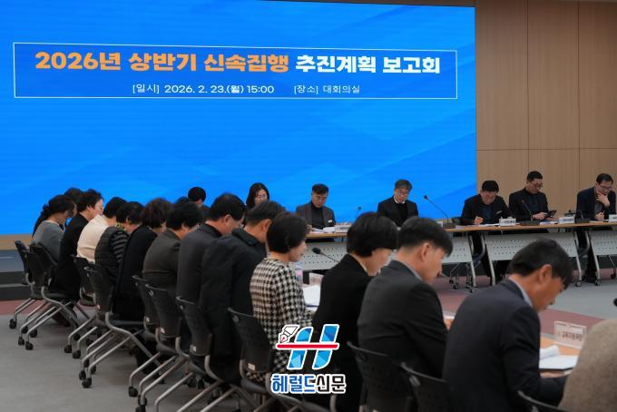 ³ªÁֽô Áö³ 23ÀÏ ½Ãû ´ëȸÀǽǿ¡¼ °»ó±¸ ºÎ½ÃÀå ÁÖÀç·Î »ó¹Ý±â ½Å¼ÓÁýÇà ÃßÁø°èȹ º¸°íȸ¸¦ ¿°í ºÎ¼º° ÁýÇà ÇöȲ°ú ÁÖ¿ä »ç¾÷ ÃßÁø »óȲÀ» Á¡°ËÇß´Ù°í 24ÀÏ ¹àÇû´Ù.