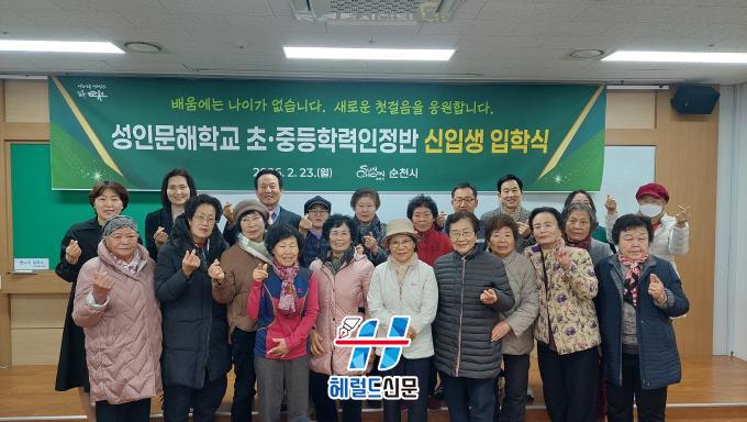 [Çì·²µå½Å¹® = ³ë½Â¾ð ±âÀÚ] ¼øÃµ½Ã´Â Áö³ 23ÀÏ ¼øÃµ½Ã Æò»ýÇнÀ°ü¿¡¼ 2026³â ¼ºÀι®ÇØÇб³ ÀÔÇнÄÀ» °³ÃÖÇϰí ÃʵîÇзÂÀÎÁ¤¹Ý 12¸í, ÁßµîÇзÂÀÎÁ¤¹Ý 15¸í µî ÃÑ 27¸íÀÇ ½ÅÀÔ»ýÀ» ¸ÂÀÌÇß´Ù.