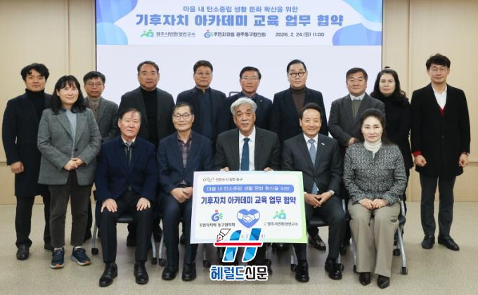 [Çì·²µå½Å¹® = Á¤µ·Ã¶ ±âÀÚ] ±¤ÁÖ µ¿±¸´Â Áö³ 24ÀÏ ÁÖ¹ÎÀÚġȸ µ¿±¸ÇùÀÇȸ, (»ç)±¤ÁֽùÎȯ°æ¿¬±¸¼Ò¿Í ±âÈÄÀ§±â ´ëÀÀ ¿ª·® °È¸¦ À§ÇÑ ¾÷¹«Çù¾àÀ» ü°áÇϰí, °ü³» 13°³ µ¿À» ´ë»óÀ¸·Î ¡®±âÈÄÀÚÄ¡ ¾ÆÄ«µ¥¹Ì¡¯¸¦ ¿î¿µÇß´Ù°í ¹àÇû´Ù.