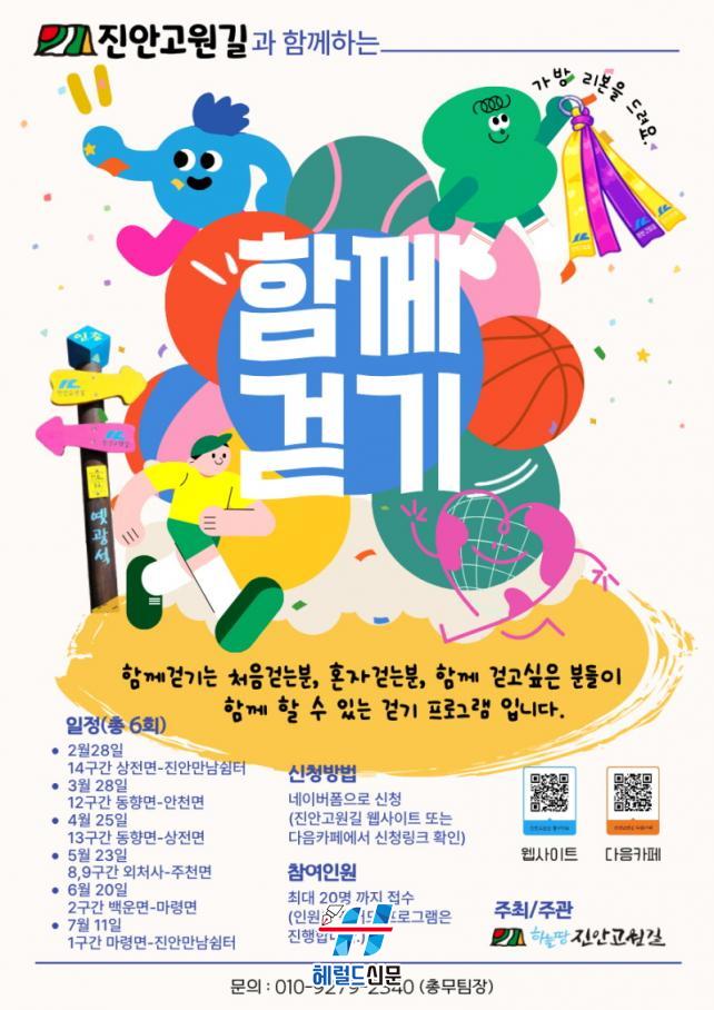 Áø¾È°í¿ø±æ ÀÌÀçÇö ´ëÇ¥´Â ¡°À̹ø ÇÁ·Î±×·¥Àº ´Ü¼øÈ÷ ±æÀ» °È´Â °ÍÀ» ³Ñ¾î Áø¾ÈÀÇ ¿ª»ç¿Í ÀÚ¿¬À» ÇÔ²² ³ª´©¸ç ÀÏ»óÀÇ È°·ÂÀ» ã´Â ½Ã°£ÀÌ µÉ °Í¡±À̶ó¸ç ¡°È¸Â÷º° Âü°¡ ÀοøÀÌ 20¸íÀ¸·Î Á¦ÇѵǾî ÀÖ´Â ¸¸Å °ü½É ÀÖ´Â ºÐµéÀº ¼µÑ·¯ ½ÅÃ»ÇØ ÁÖ½Ã±æ ¹Ù¶õ´Ù¡±°í ÀüÇß´Ù.