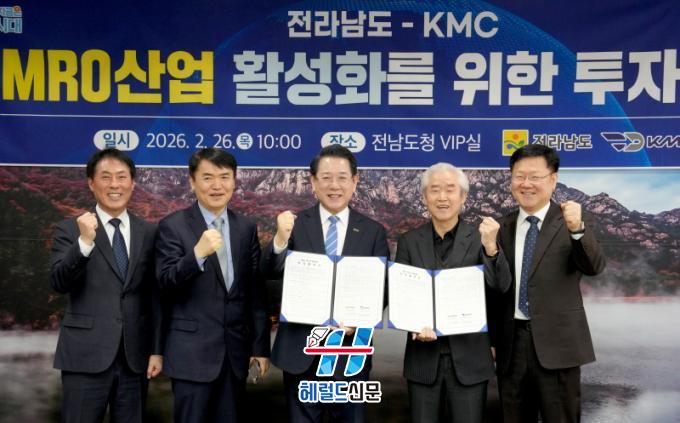 [Çì·²µå½Å¹® = ³ë½Â¾ð ±âÀÚ] Àü¶ó³²µµ´Â 26ÀÏ µµÃ» Á¢°ß½Ç¿¡¼ ¹Ì±¹ ȹ°±â °³Á¶(P2F) Àü¹®±â¾÷ÀÎ KMC¿Í 3õ480¾ï ¿ø ±Ô¸ðÀÇ Ç×°øÁ¤ºñ(MRO) ÅõÀÚÇù¾àÀ» ÇØ ¹«¾È±¹Á¦°øÇ×À» ±Û·Î¹ú Ç×°ø¹°·ù °ÅÁ¡À¸·Î À°¼ºÇÏ´Â ±â¹ÝÀ» ¸¶·ÃÇß´Ù°í ¹àÇû´Ù.