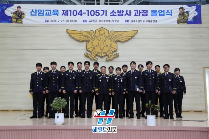[Çì·²µå½Å¹® = ³ë½Â¾ð ±âÀÚ] ±¤ÁÖ±¤¿ª½Ã ¼Ò¹æÇб³´Â 27ÀÏ ±³À°ÈƷðü¿¡¼ Á¦104¡¤105±â ½ÅÀÓ±³À° ¼Ò¹æ»ç °úÁ¤ Á¹¾÷½ÄÀ» °³ÃÖÇß´Ù.