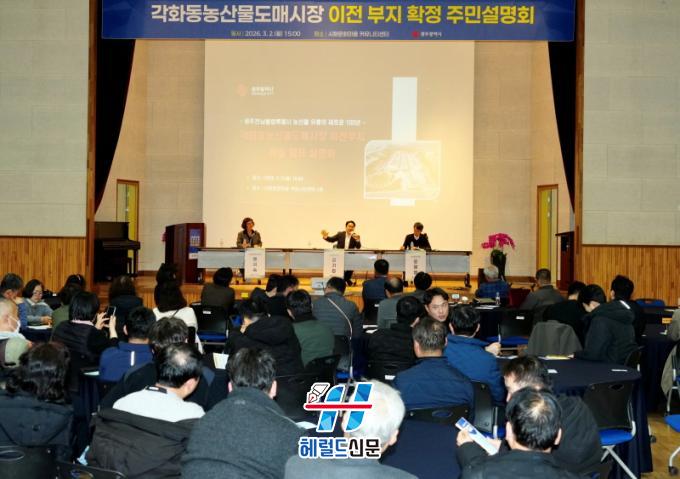 ±¤ÁÖ±¤¿ª½Ã(½ÃÀå °±âÁ¤)´Â ÃÖ±Ù °¢Èµ¿³ó»ê¹°µµ¸Å½ÃÀåÀÇ ÀÌÀü ºÎÁö¸¦ È®Á¤Çϰí, 2ÀÏ ºÏ±¸ °¢Èµ¿ ½Ãȹ®È¸¶À» Ä¿¹Â´ÏƼ¼¾ÅÍ¿¡¼ Áֹμ³¸íȸ¸¦ °³ÃÖÇß´Ù.