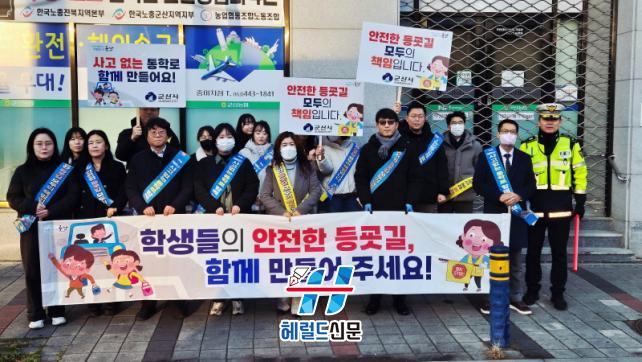 À̳¯ Çà»ç¿¡´Â ±º»ê°æÂû¼¿Í ±º»ê±³À°Áö¿øÃ», ±º»êÁß¾ÓÃʵîÇб³ °ü°èÀÚ µî 60¿© ¸íÀÌ Âü¿©ÇØ ¡°ÇлýµéÀÇ ¾ÈÀüÇÑ µî±·±æ ÇÔ²² ¸¸µé¾î ÁÖ¼¼¿ä!¡±¶ó´Â ¹®±¸°¡ ´ã±ä Çö¼ö¸·°ú È«º¸ Àü´ÜÀ» Ȱ¿ëÇØ »óÀΰú ½Ã¹ÎµéÀÇ ÀÚ¹ßÀûÀÎ ÇùÁ¶¸¦ ¿äûÇß´Ù.