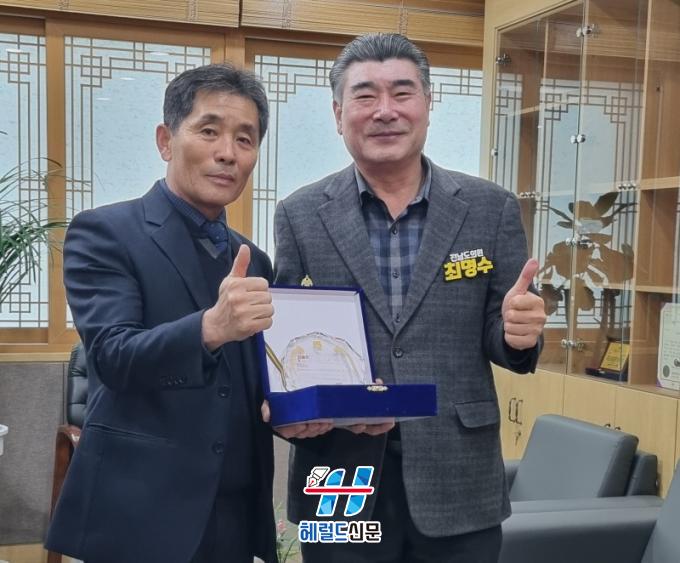 [Çì·²µå½Å¹® = ³ë½Â¾ð ±âÀÚ] Àü¶ó³²µµÀÇȸ ¾ÈÀü°Ç¼³¼Ò¹æÀ§¿øÈ¸ ÃÖ¸í¼ö µµÀÇ¿ø(´õºÒ¾î¹ÎÁִ硤³ªÁÖ2)Àº Áö³ 2¿ù 27ÀÏ ¿¸° ³ªÁÖÃàÇù Á¤±âÃÑȸ¿¡¼ ³ªÁÖ ³óÃà»ê¾÷ÀÇ À§»óÀ» ³ôÀ̰í Ãà»ê ³ó°¡ÀÇ ½ÇÀÍ ÁõÁø¿¡ ¾ÕÀå¼´Â µî Áö¿ª Ãà»ê¾÷ ¹ßÀü°ú À¯Åë ȯ°æ °³¼±¿¡ ±â¿©ÇÑ °ø·Î·Î ³ª»óÇÊ Á¶ÇÕÀåÀ¸·ÎºÎÅÍ °¨»çÆÐ¸¦ ¼ö¿©¹Þ¾Ò´Ù.