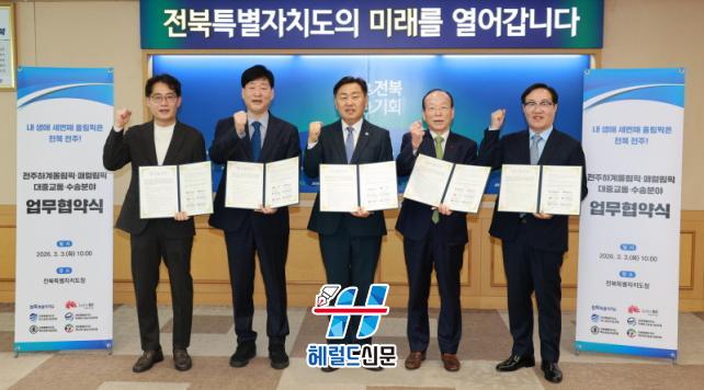 [Çì·²µå½Å¹® = ³ë½Â¾ð ±âÀÚ] ÀüºÏƯº°ÀÚÄ¡µµ´Â 3ÀÏ µµÃ» ȸÀǽǿ¡¼ ÀüÁÖÇϰè¿Ã¸²ÇÈ¡¤ÆÐ·²¸²ÇÈ À¯Ä¡¸¦ À§ÇÑ ´ëÁß±³Å롤¼ö¼Û ºÐ¾ß ¾÷¹«Çù¾àÀ» ü°áÇϰí, ¾ÈÀüÇϰí ü°èÀûÀÎ ¼ö¼Û Áö¿ø ±â¹Ý ¸¶·Ã¿¡ º»°Ý ³ª¼¹´Ù.
