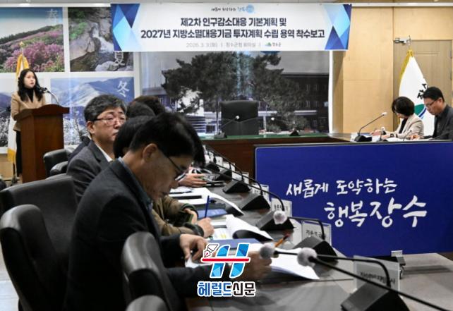 [Çì·²µå½Å¹® = ³ë½Â¾ð ±âÀÚ] Àå¼ö±ºÀº 3ÀÏ ±ºÃ» 2Ãþ ȸÀǽǿ¡¼ Áö¿ª¼Ò¸ê¿¡ ¼±Á¦ÀûÀ¸·Î ´ëÀÀÇϱâ À§ÇÑ ¡¸Á¦2Â÷ Àα¸°¨¼ÒÁö¿ª´ëÀÀ ±âº»°èȹ ¹× 2027³â Áö¹æ¼Ò¸ê´ëÀÀ±â±Ý ÅõÀÚ°èȹ ¼ö¸³ ¿ë¿ª¡¹ Âø¼öº¸°íȸ¸¦ °³ÃÖÇß´Ù.
