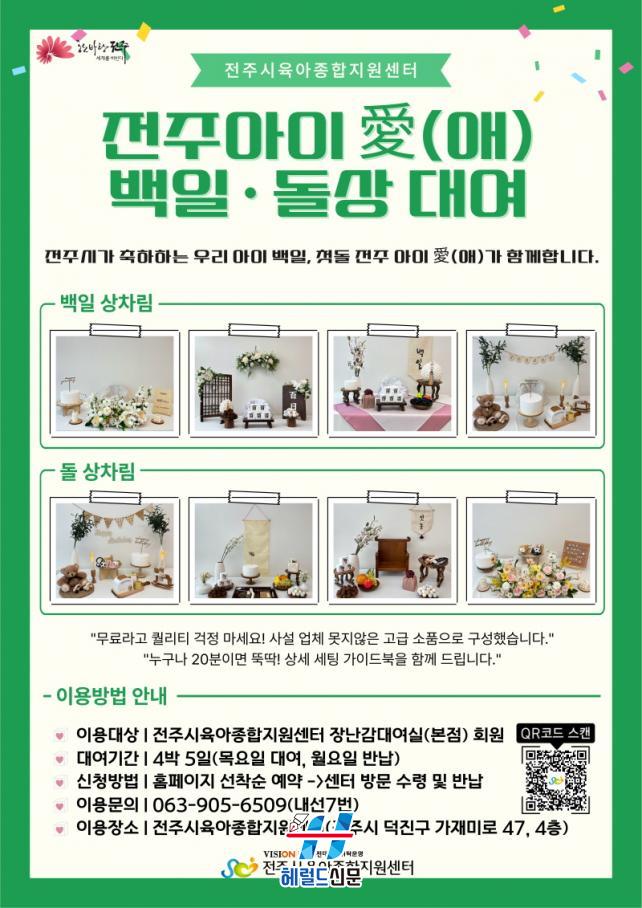 ¹éÀÏ¡¤µ¹»óÀº 1°¡±¸´ç 4¹Ú 5Àϰ£ ´ë¿©°¡ °¡´ÉÇϸç, ¹éÀÏ»óÀº 2~4°³¿ù ¿µ¾Æ°¡ ÀÖ´Â °¡Á¤, µ¹»óÀº 11~13°³¿ù ¿µ¾Æ°¡ ÀÖ´Â °¡Á¤ÀÌ¸é °¢°¢ ´ë¿©ÇÒ ¼ö ÀÖ´Ù. ´ë¿©¸¦ Èñ¸ÁÇÏ´Â °¡Á¤Àº ÀüÁÖ½ÃÀ°¾ÆÁ¾ÇÕÁö¿ø¼¾ÅÍ Àå³°¨µµ¼°ü ´©¸®Áý(www.jeonjuscc.or.kr/toy)¿¡¼ »çÀü ¿¹¾àÇÑ ÈÄ ¼¾ÅÍ¿¡ ¹æ¹®ÇØ ´ë¿© ¹°Ç°À» ¼ö·ÉÇÏ¸é µÈ´Ù.
