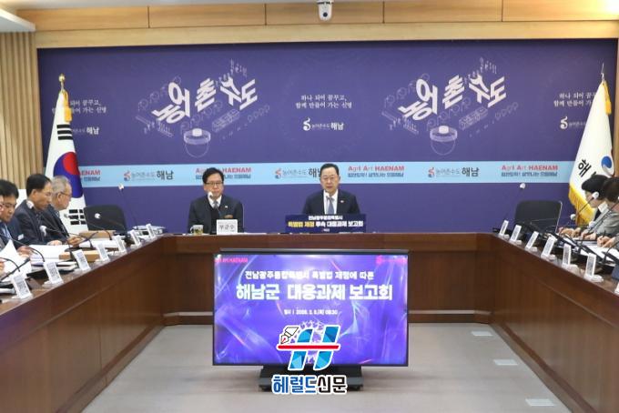 [Çì·²µå½Å¹® = ³ë½Â¾ð ±âÀÚ] ÇØ³²±ºÀº 5ÀÏ ±ºÃ» »óȲ½Ç¿¡¼ Àü³²±¤ÁÖÅëÇÕÆ¯º°½Ã ¼³Ä¡ Ư·Ê¹ý Á¦Á¤¿¡ µû¸¥ ´ëÀÀ°úÁ¦ º¸°íȸ¸¦ °³ÃÖÇϰí, ÅëÇÕÆ¯º°½Ã Ãâ¹ü¿¡ ´ëºñÇÑ Áö¿ª ¹ßÀü Àü·«À» Á¾ÇÕ Á¡°ËÇß´Ù.
